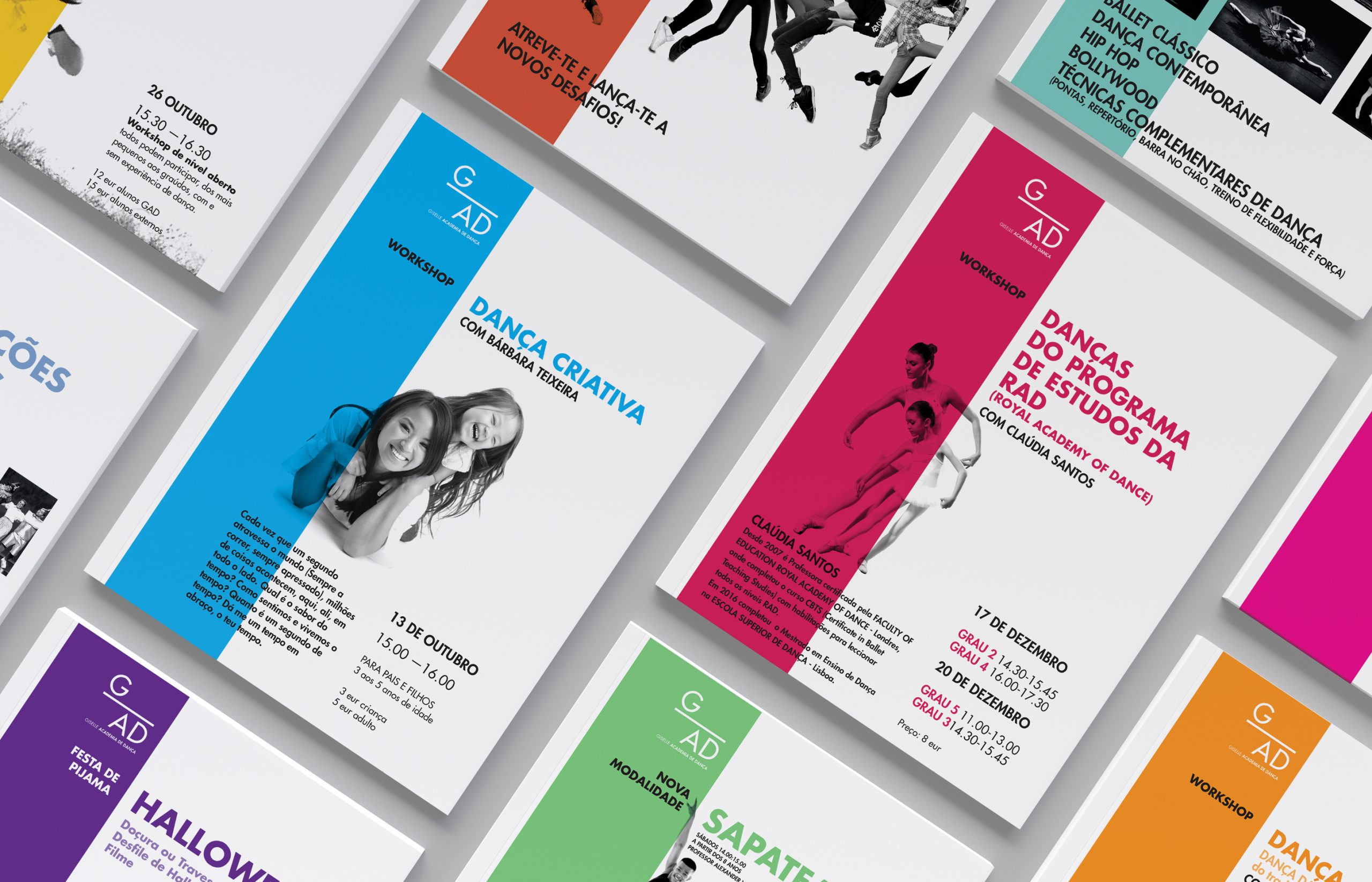 “Giselle, Escola de Bailadol” had over a 30 years tradition teaching ballet, the school directors wanted to take some distance from the classic identity that the school had, showing a new and more energetic school, without leaving it behind its classic ballet heritage.